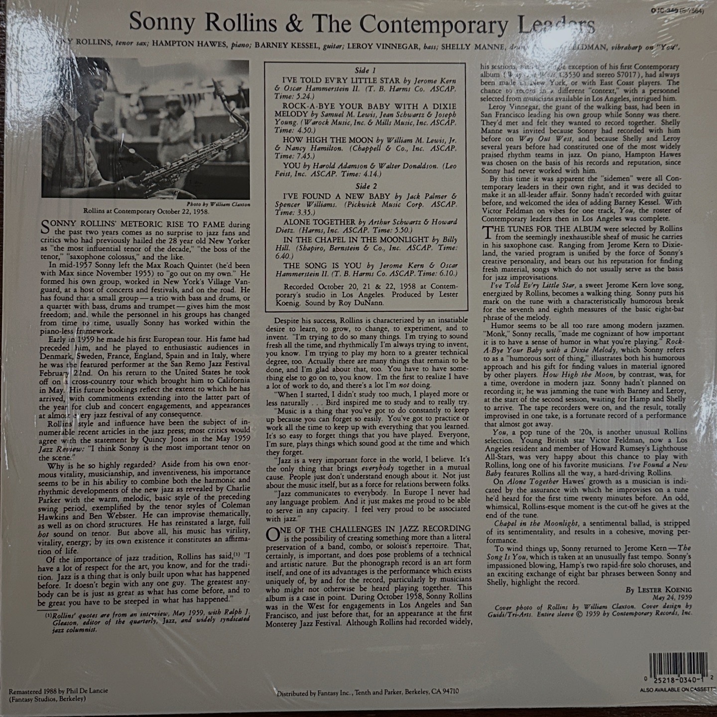 소니 롤린스 (Sonny Rollins) - CONTEMPORARY LEADERS (1988)